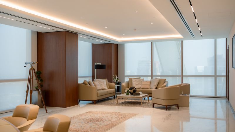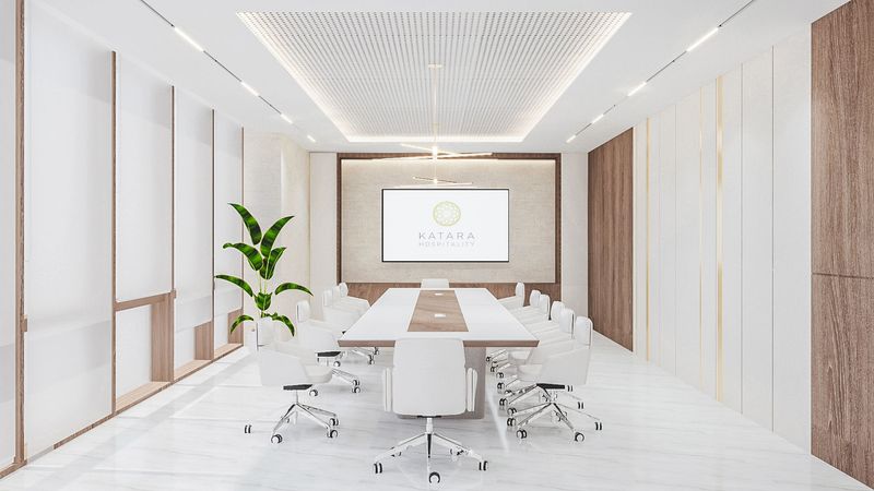 Daya’s vision for Katara Hospitality’s new headquarters is transformative. The first three floors are a testament to smart design and sustainability, with offices and meeting rooms brought to life using 80-90% reused materials like gypsum and glass partitions. This elegant blend of past and present showcases an eco-friendly approach without compromising on style.